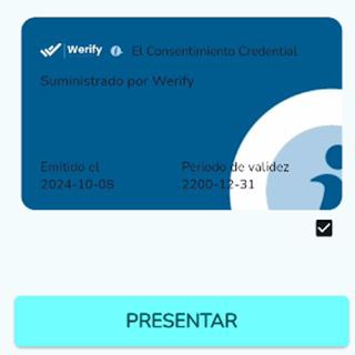 Al pasar nuestra ventana de captura por encima del QR, nos preseleccionará la Credencial “El Consentimiento Credential”. Importante!: Debemos marcar la casilla debajo de la tarjeta de la credencial, y ya podemos presentarla. Y ¡ya está! Se abrirá nuestra sesión de ElConsentimiento!